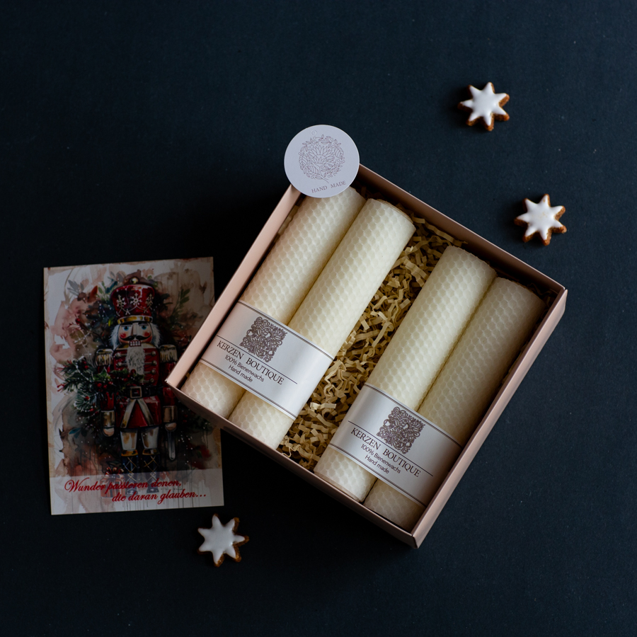 Lieferumfang: Set aus 4 Kerzen + 2 Weihnachtsstern-Kerzen aus reinem Bienenwachs