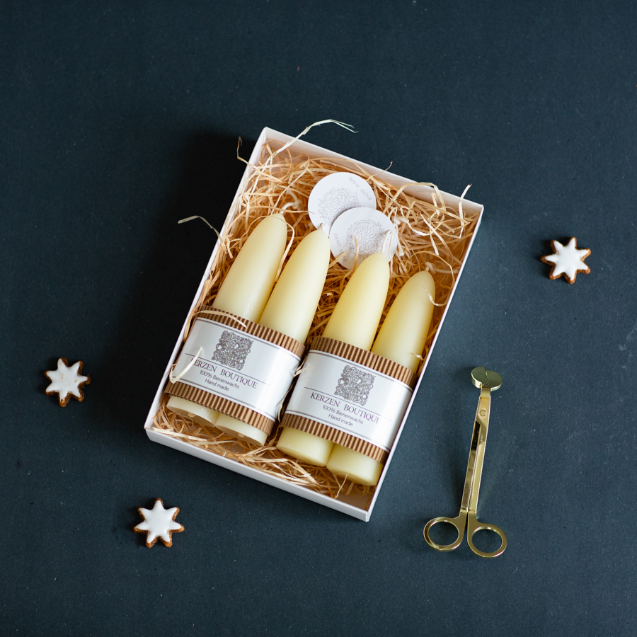 Mit ihrem natürlichen, aromatischen Duft nach Honig verströmen sie einen Hauch von Natur – ideal für entspannte Abende oder besondere Anlässe. Perfekt als Geschenk für Kolleginnen, Freundinnen, Omas oder jeden, der stilvolle Bio-Qualität schätzt.