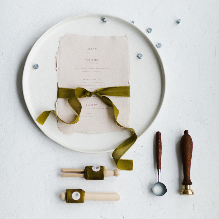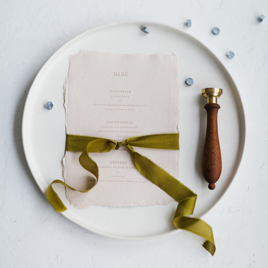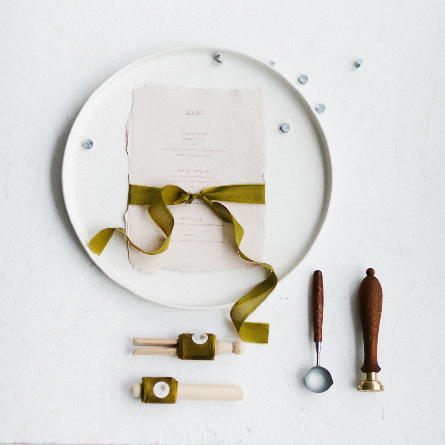 Elegante Seidenbänder gefertigt aus hochwertiger Naturseide. Diese leichte Seidenbänder sind perfekt für Geschenkverpackungen und als Deko für Papeterie-Sets.