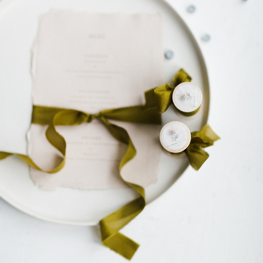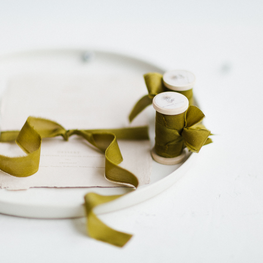 Our plant dyed silk ribbons are made from the highest quality silk and plant-based dyes. They are crafted in small batches by hand. Whether to add romance to a rustic bouquet, texture to an inspired, styled shoot or an element of wild beauty for your wedding, we promise each piece will be stunningly simple, adding a magic touch to your very own tale.