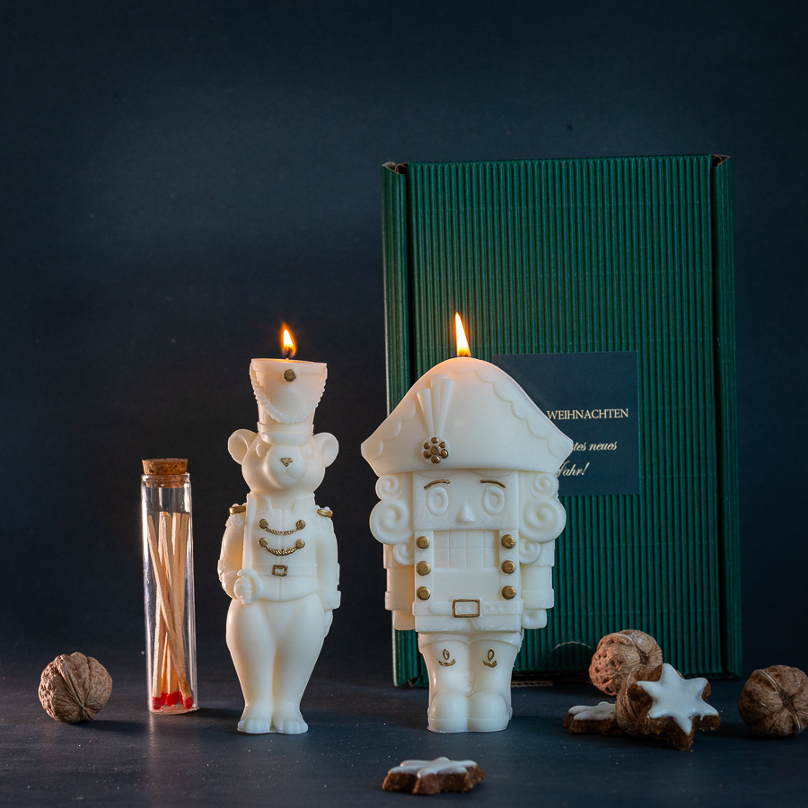 Set WEIHNACHSKERZEN NUSSKNACKER groß und Mäusekönig weiß